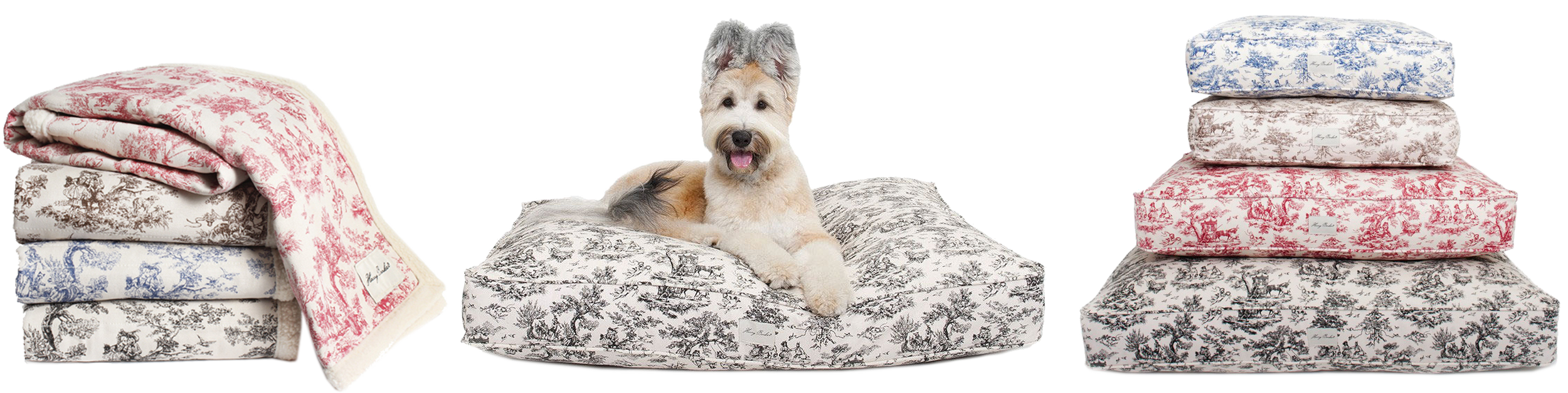Canines loved their Doggie Toile canvas beds and sherpa-baked blankets.